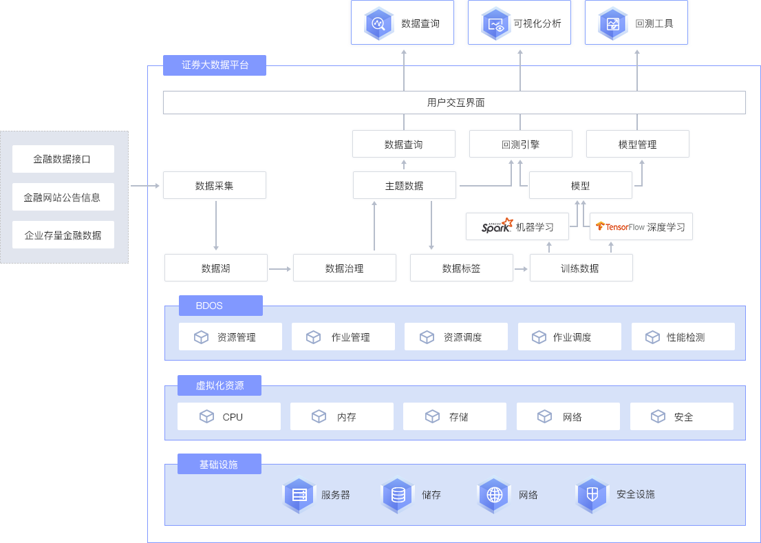 提供一站式(私有化)发布平台,包含数据采集、清洗、转换、模型训练和回测一整套功能体系,辅助投研机构进行高效且持续的分析,支撑量化团队进行海量数据分析与建模。